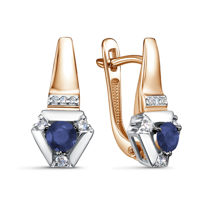 Серьги, Комбинированное | 6 Бр кр-57 0,029Ct 3/5А ,6 Бр кр-57 0,089Ct 3/6А ,2 Сапфир Кр 0,664Ct 2/2 |