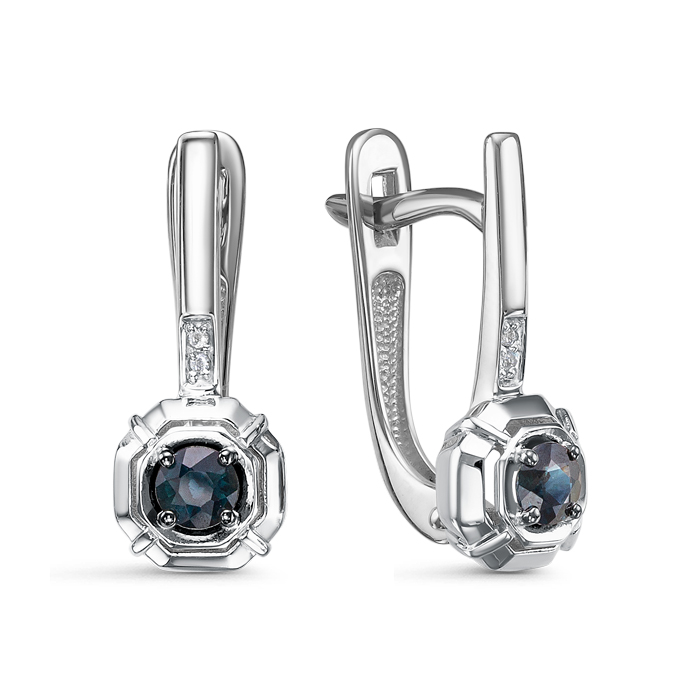 Серьги, Белый | 4 Бр кр-57 0,010Ct 3/6А ,2 Сапфир Кр 0,270Ct 2/2 |