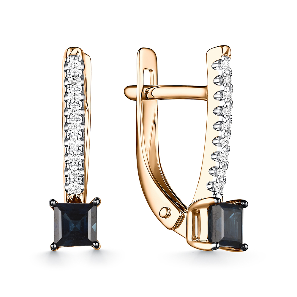 Серьги из золота с камнем Бриллиант, Сапфир