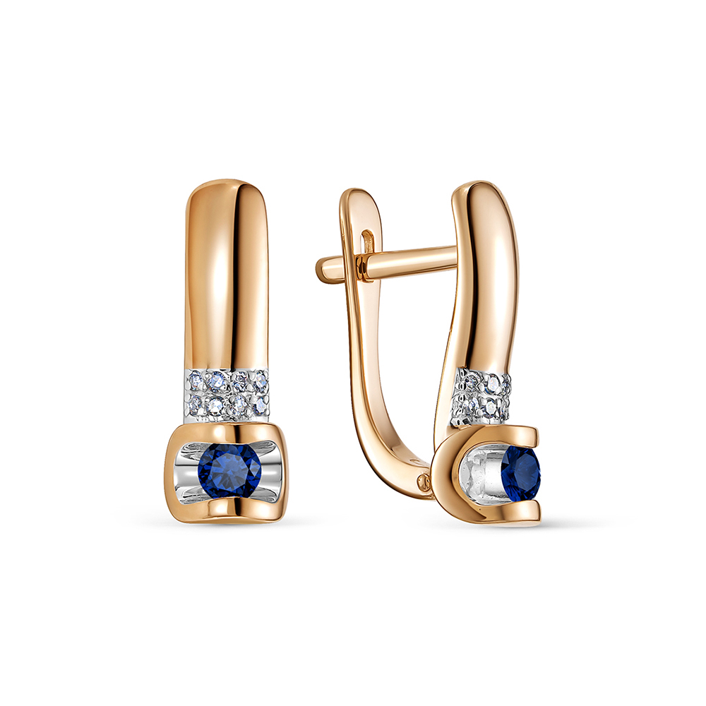 Серьги, Комбинированное | 16 Бр кр-17 0,090Ct 2/2А ,2 Сапфир Кр 0,252Ct 2/2 |