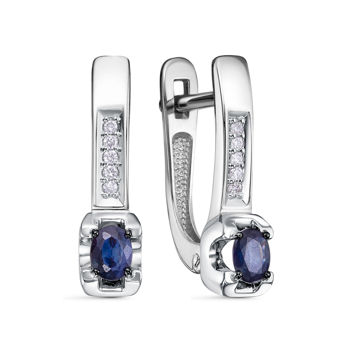 Серьги, Белый | 10 Бр кр-57 0,044Ct 3/6А ,2 Сапфир Ов 0,470Ct 2/2 |