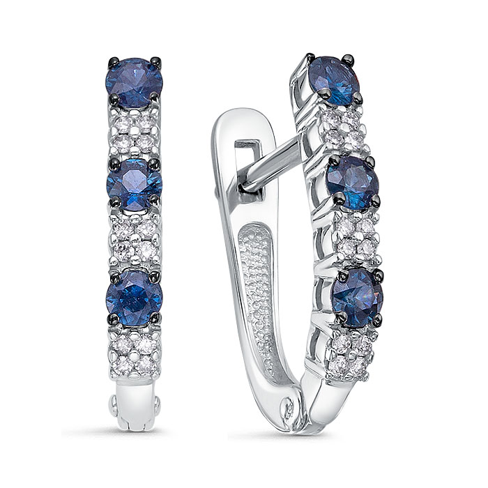 Серьги, Белый | 24 Бр кр-57 0,085Ct 3/6А ,6 Сапфир Кр 0,424Ct 2/2 |