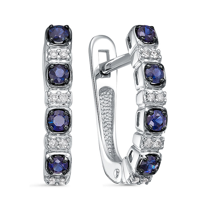 Серьги, Белый | 16 Бр кр-57 0,056Ct 3/6А ,8 Сапфир Кр 0,376Ct 2/2 |