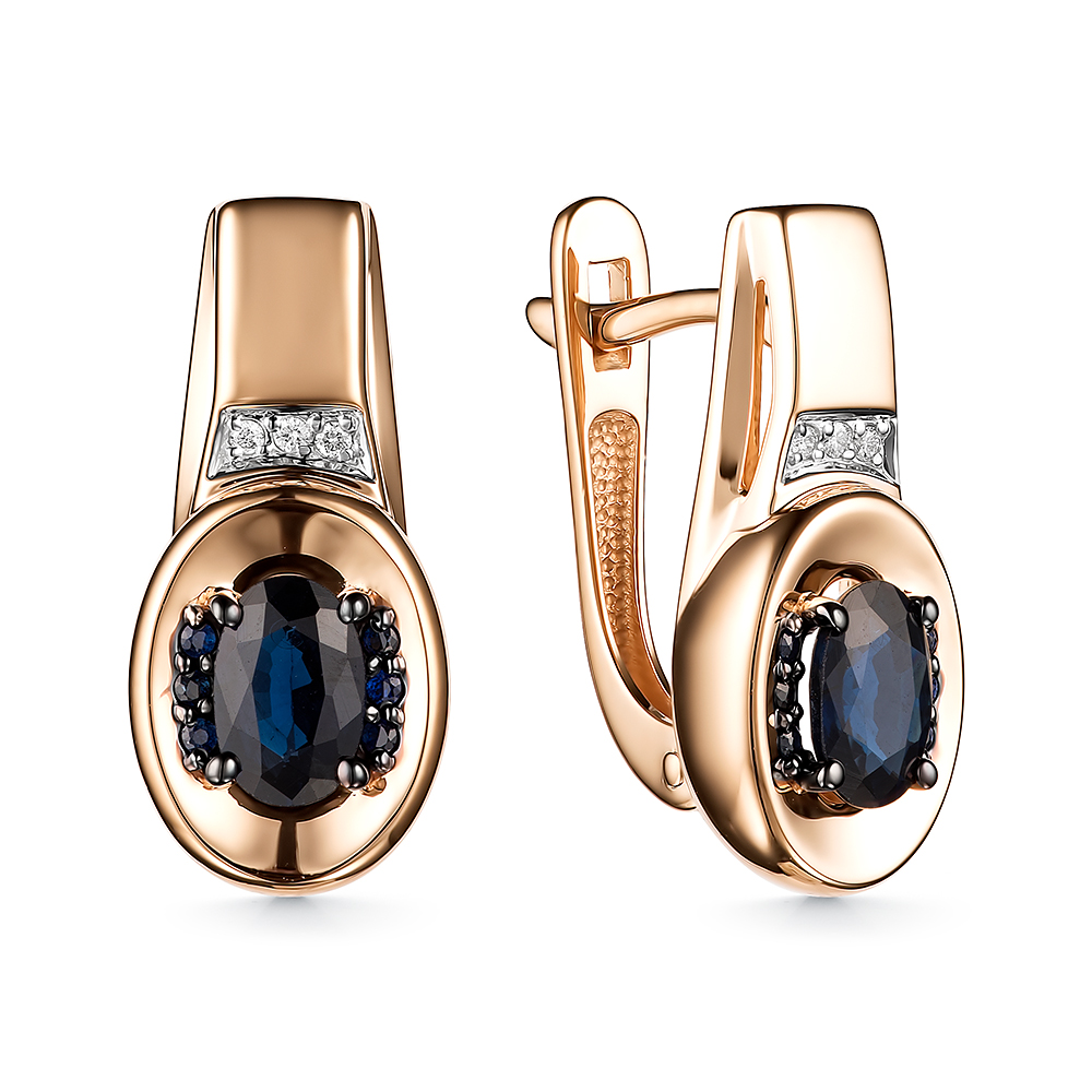 Серьги из золота с камнем Бриллиант, Сапфир