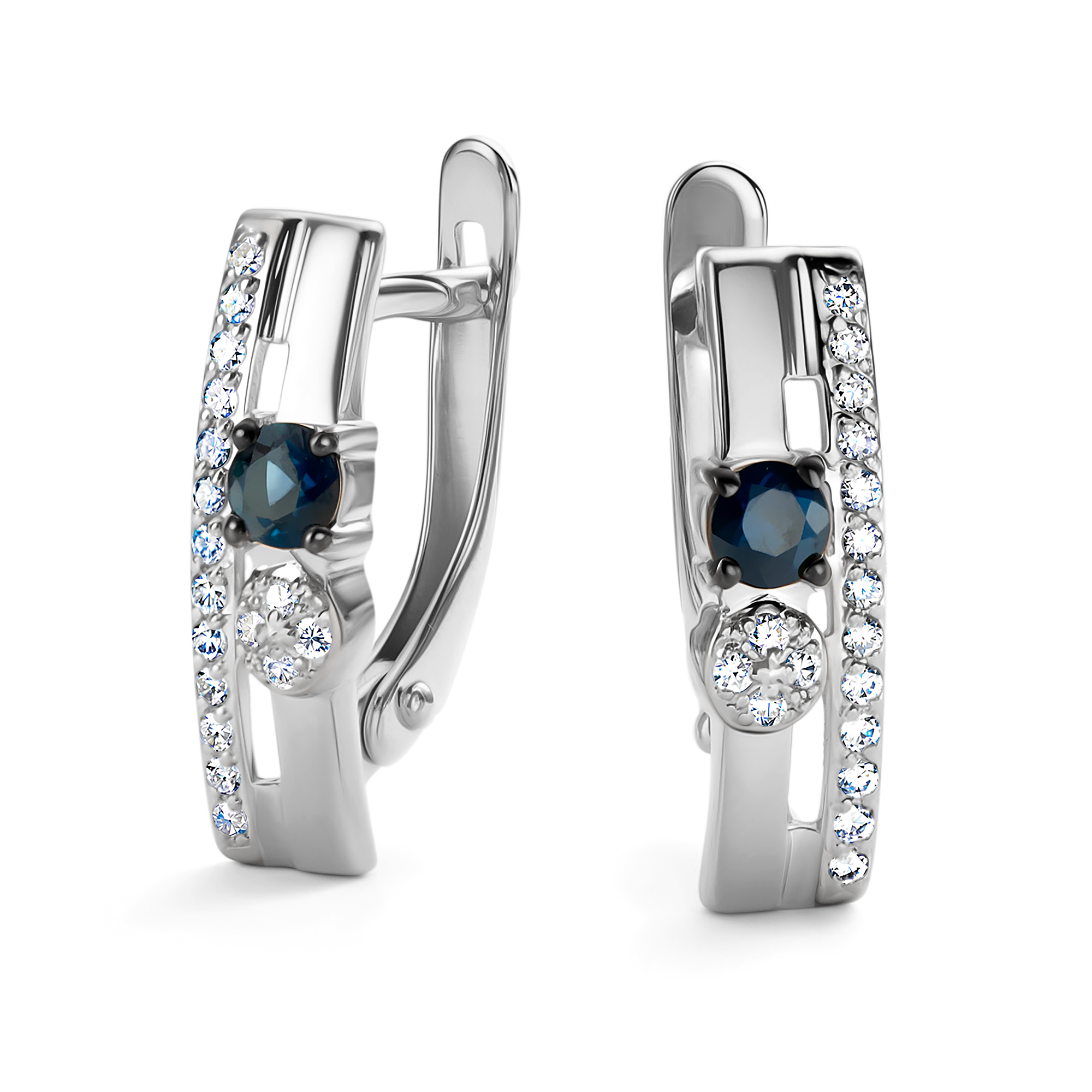 Серьги, Белый | 34 Бр кр-57 0,107Ct 4/5А ,2 Сапфир Кр 0,255Ct 2/2 |