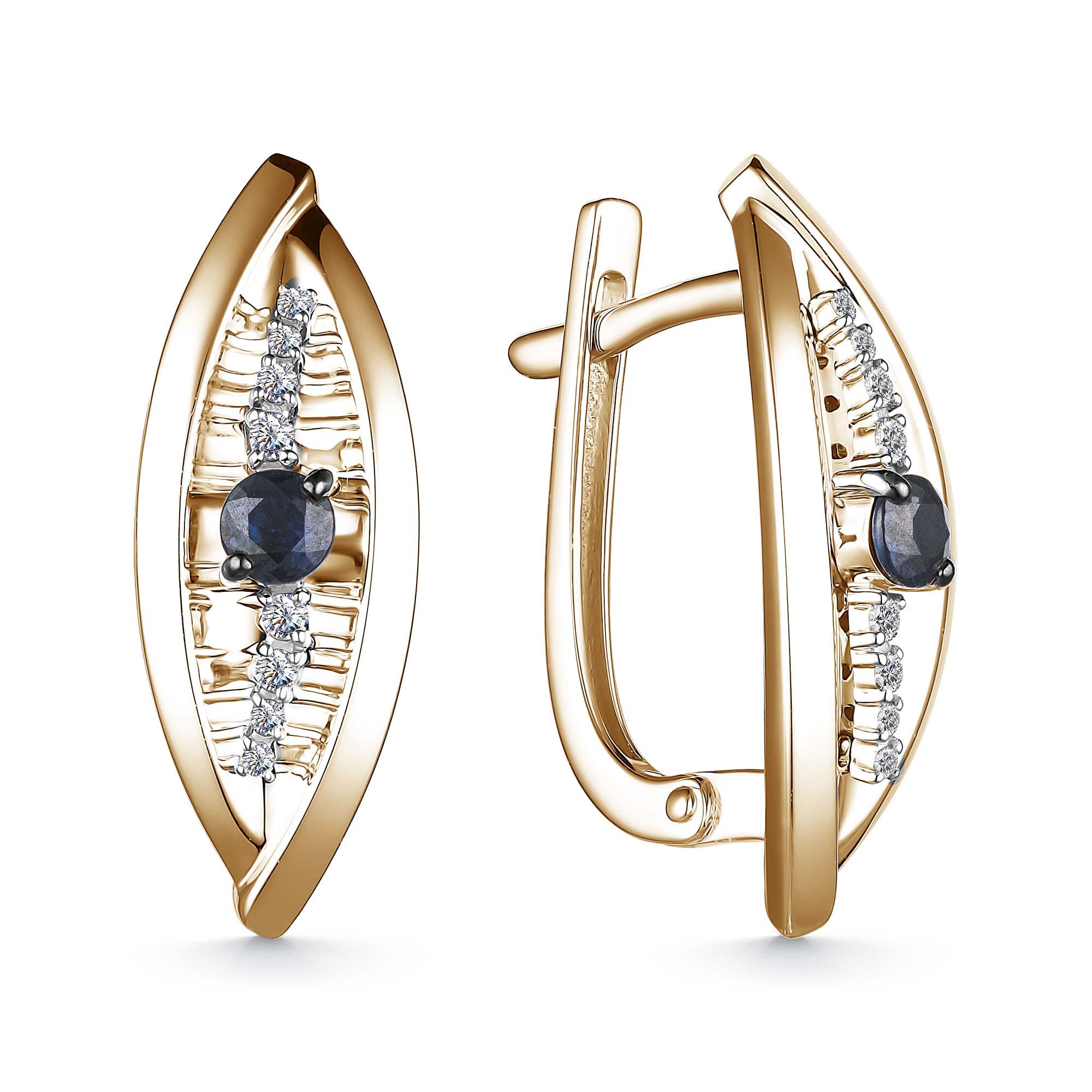 Серьги | 16 Бр кр-57 0,096Ct 4/5А ,2 Сапфир Кр 0,326Ct 2/2 |