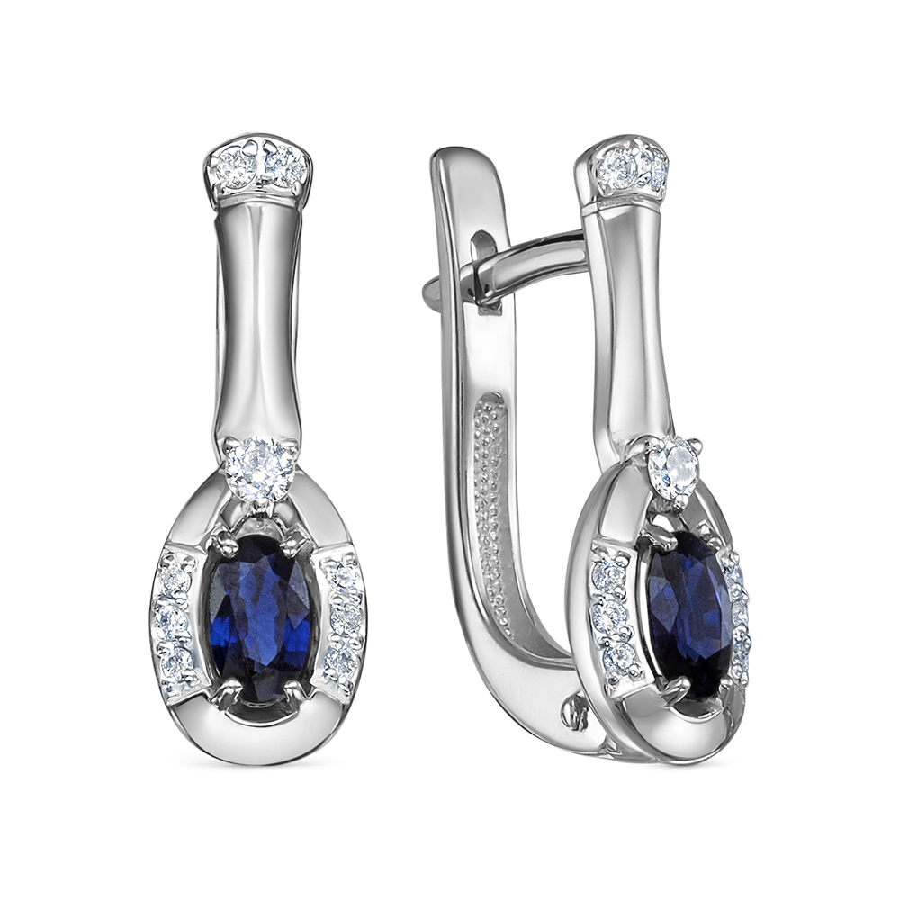 Серьги, Белый | 18 Бр кр-57 0,166Ct 3/6А ,2 Сапфир Ов 0,585Ct 2/2 |