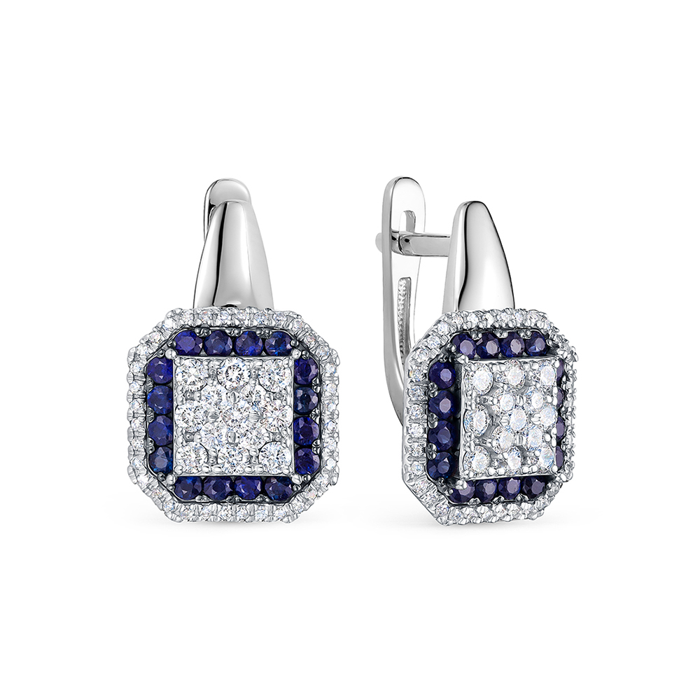 Серьги, Белый | 72 Бр кр-17 0,160Ct 2/2А ,26 Бр кр-57 0,529Ct 3/6А ,32 Сапфир Кр 0,625Ct 2/2 |