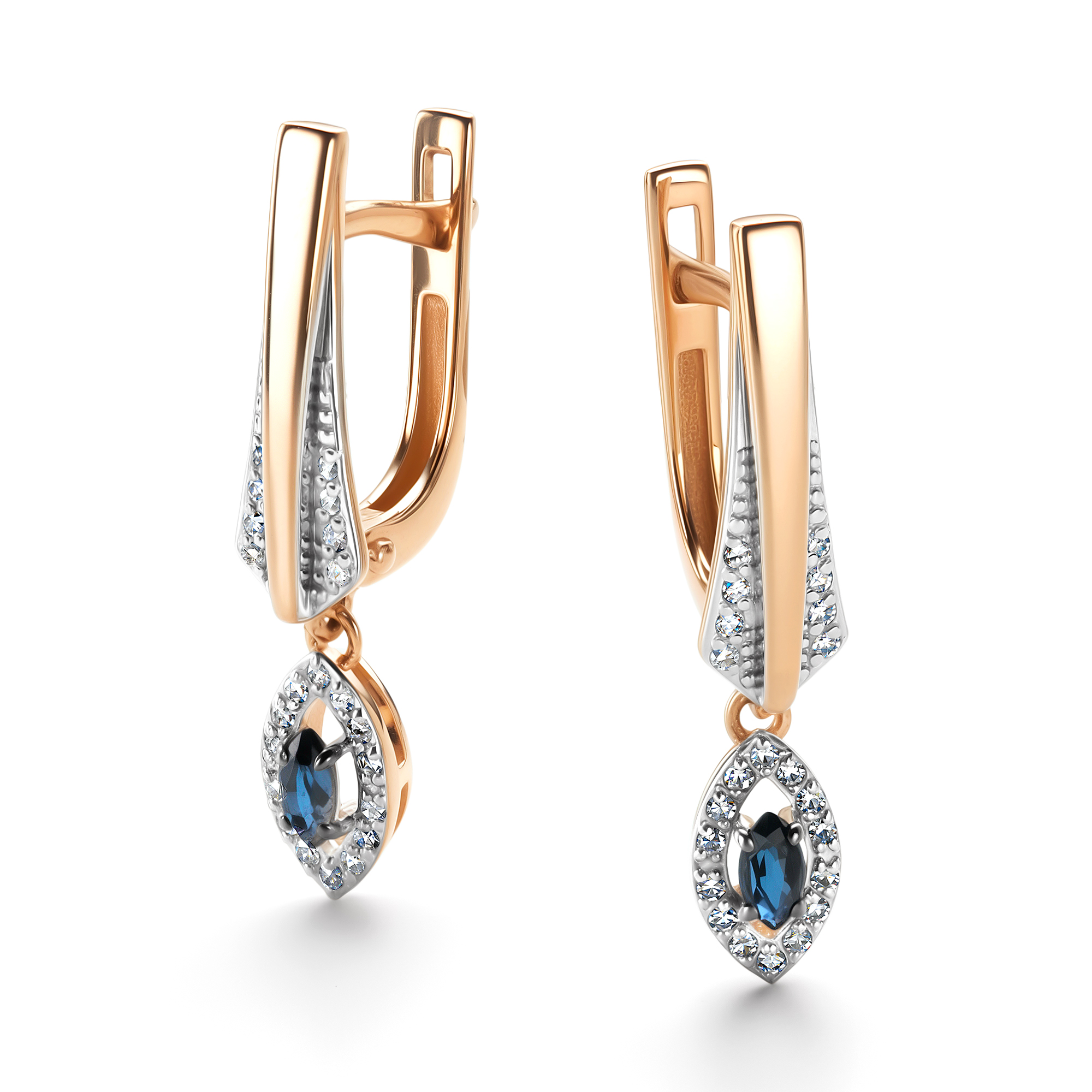 Серьги, с подвесным элементом, Комбинированное | 44 Бр кр-17 0,135Ct 2/3А ,2 Сапфир Мар 0,228Ct 2/2 |