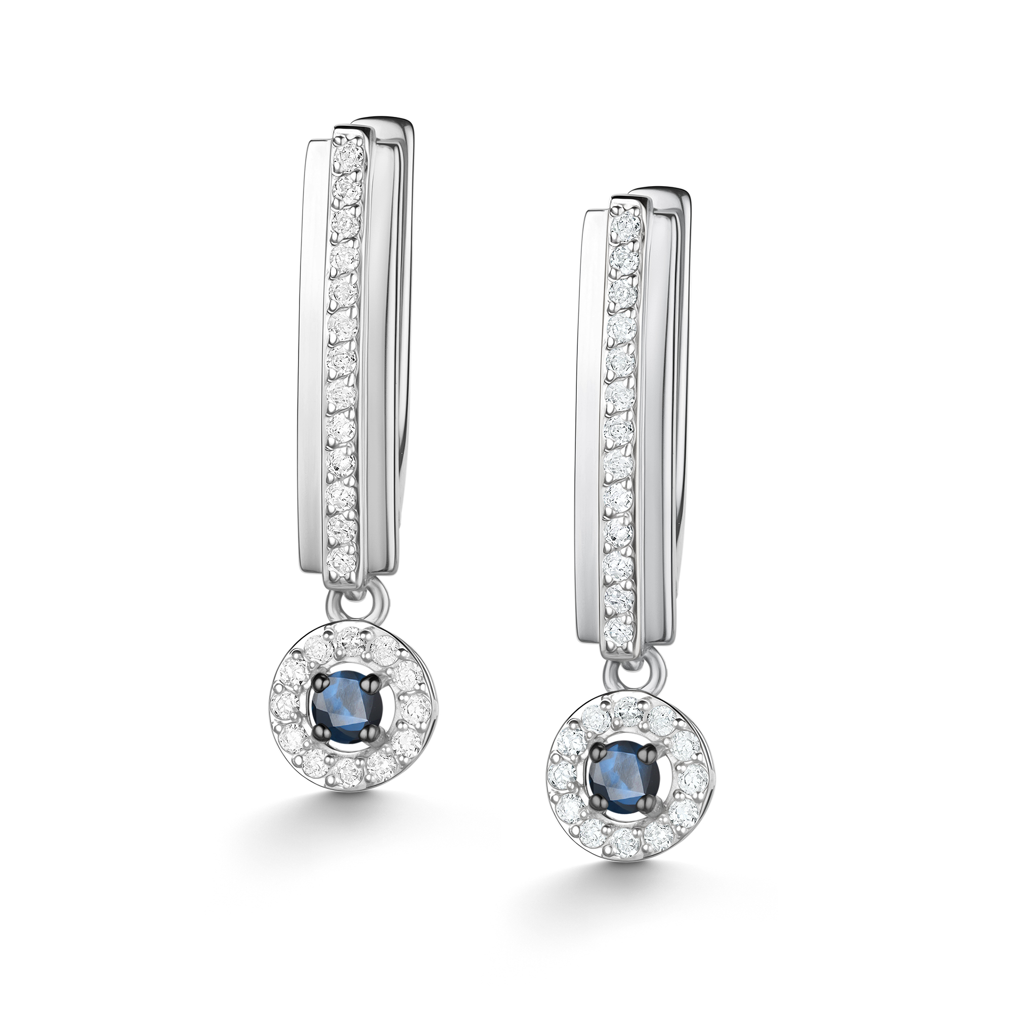 Серьги, с подвесным элементом, Белый | 50 Бр кр-57 0,248Ct 4/5А ,2 Сапфир Кр 0,155Ct 2/2 |