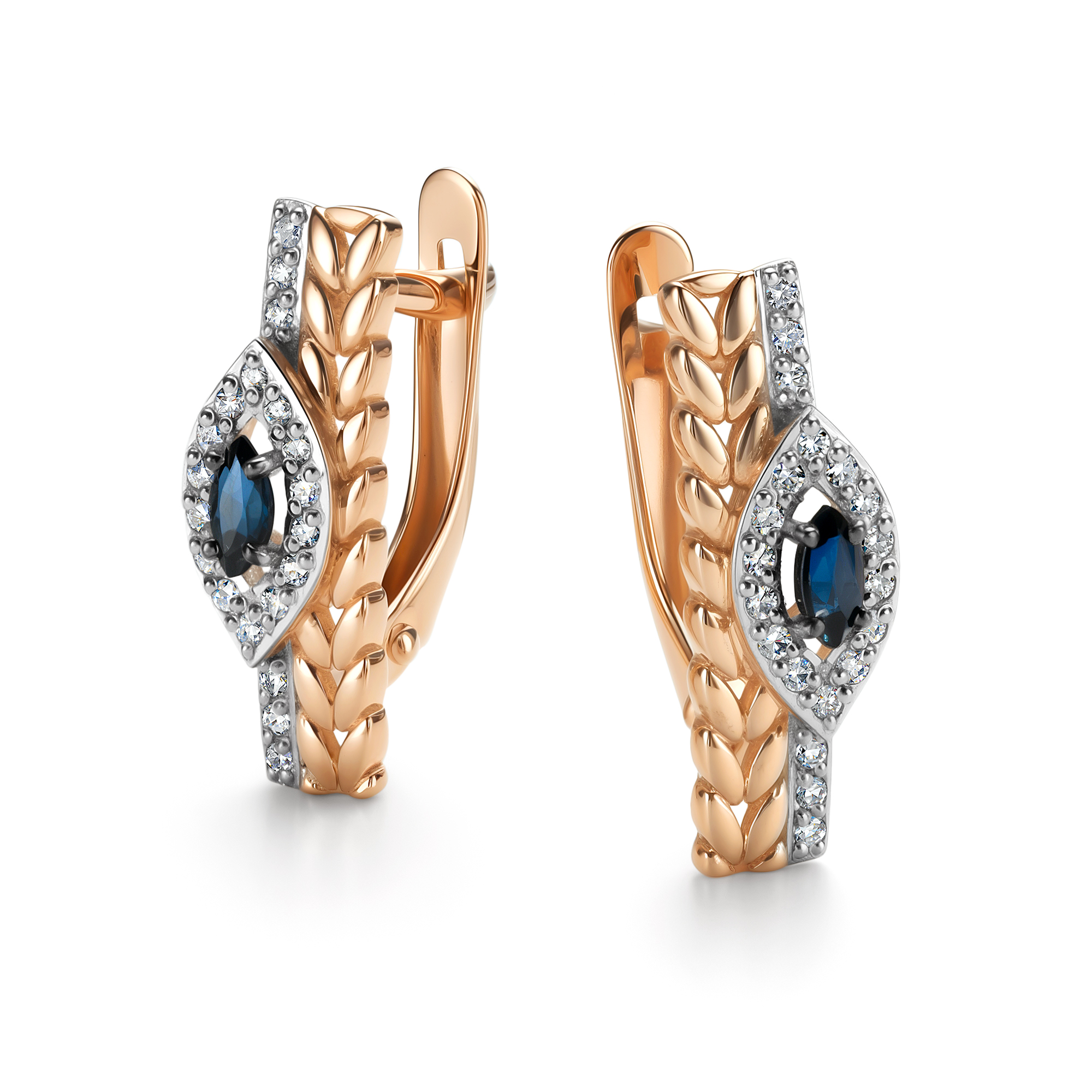 Серьги | 40 Бр кр-57 0,156Ct 4/5А ,2 Сапфир Мар 0,212Ct 2/2 |