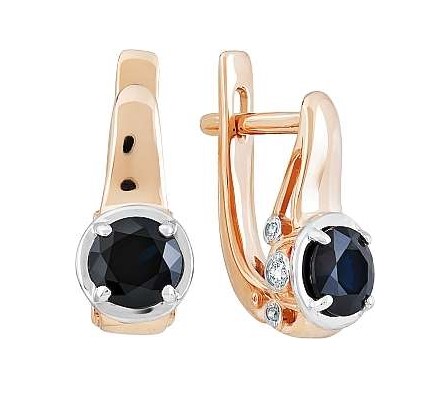 Серьги, Комбинированное | 12 Бр кр-57 0,084Ct 3/6А ,2 Сапфир Кр 1,090Ct 2/2 |