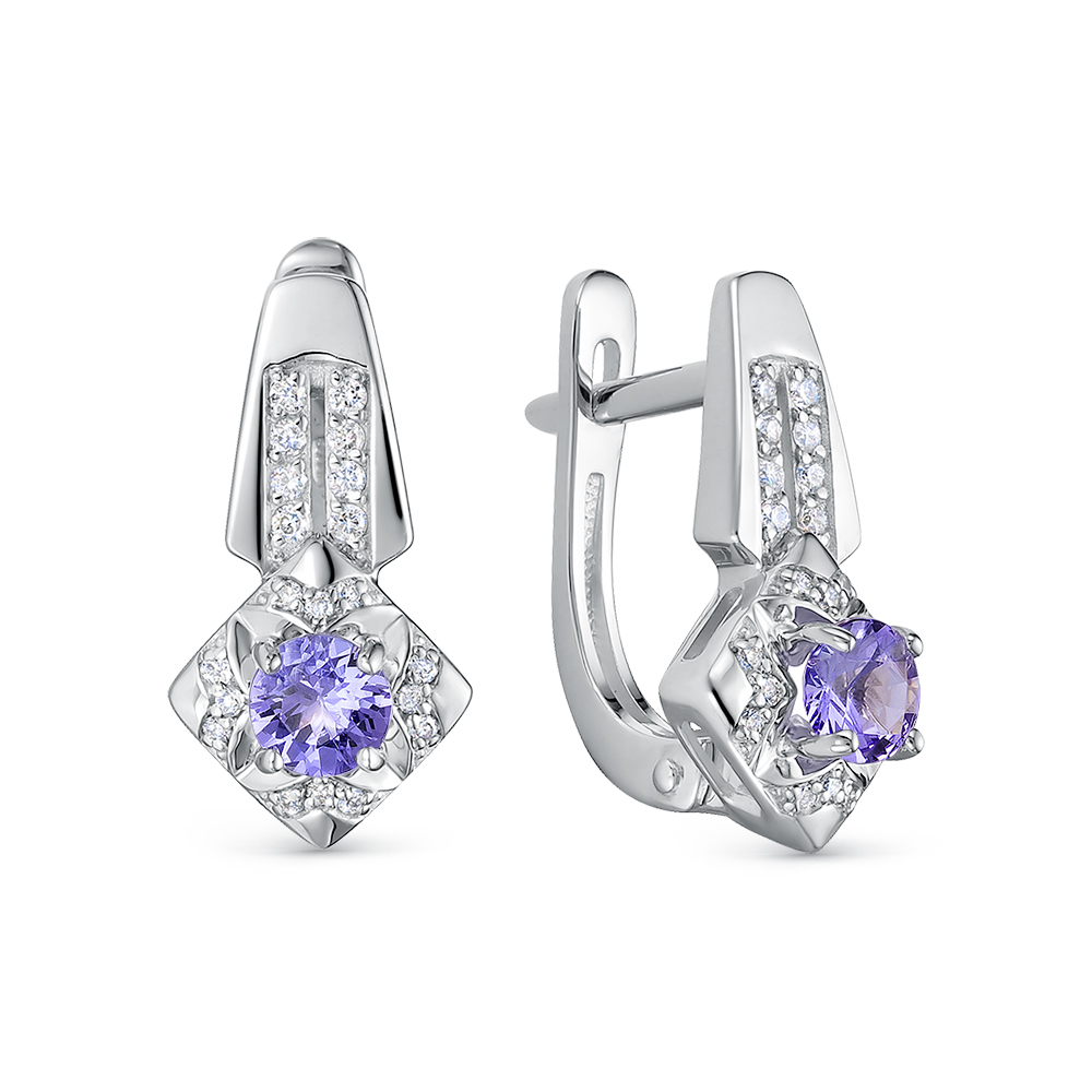 Серьги, Белый | 40 Бр кр-57 0,132Ct 3/6А ,2 Танзанит Кр 0,581 |