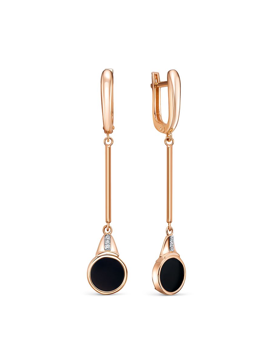 Серьги, с подвесным элементом | Оникс черный ,Фианит |