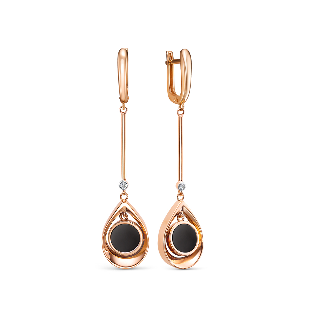 Серьги, с подвесным элементом | Оникс ,Фианит |