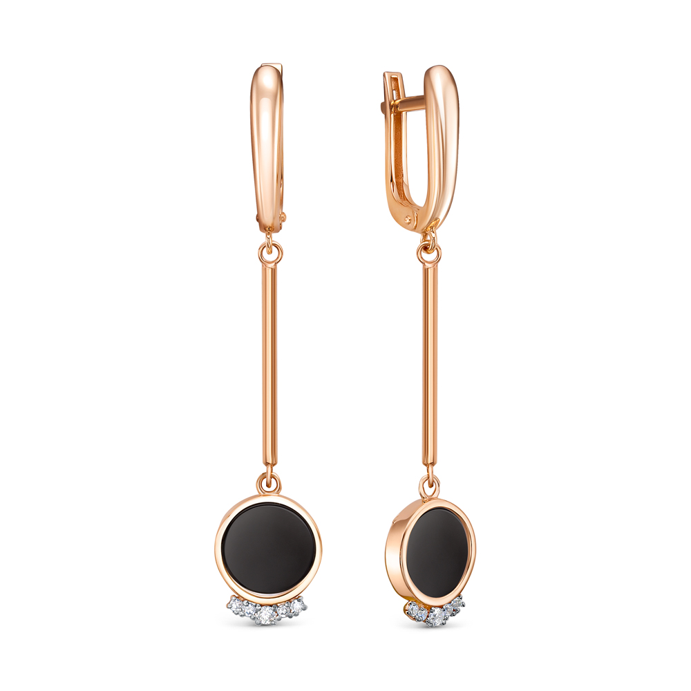 Серьги, с подвесным элементом | Оникс черный ,Фианит |