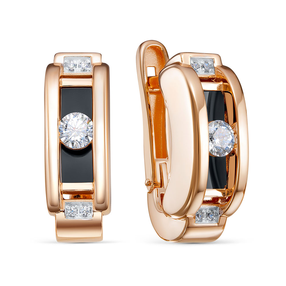 Серьги из золота с камнем Фианит, Оникс,