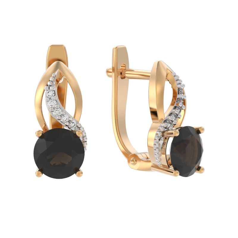 Серьги, Комбинированное | Раух-топаз ,Фианит |