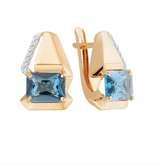 Серьги из золота с камнем Фианит, Сапфир синт.