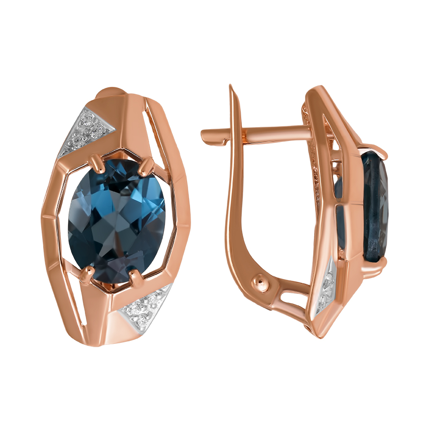 Серьги из золота с камнем Фианит, Сапфир синт.