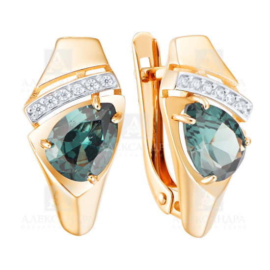 Серьги из золота с камнем Фианит, Ситалл