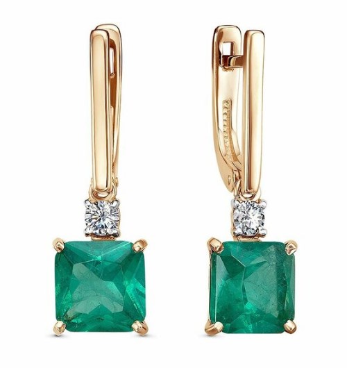 Серьги из золота с камнем Фианит, Турмалин г/т