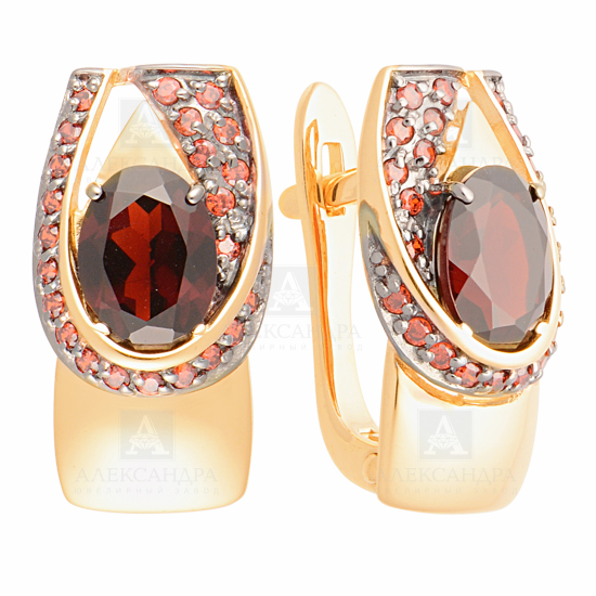 Серьги из золота с камнем Фианит, Турмалин синт.