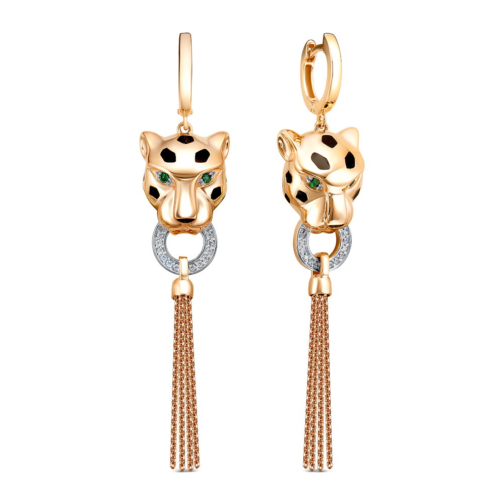 Серьги, с подвесным элементом | Фианит ,Эмаль |