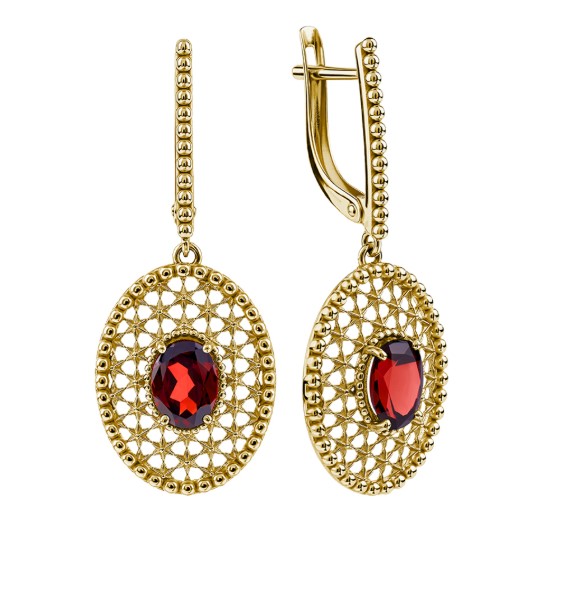 Серьги, с подвесным элементом, Желтый | Гранат |