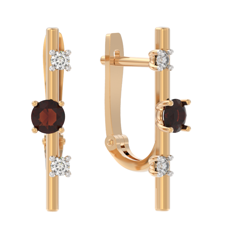 Серьги из золота с камнем Гранат, Фианит