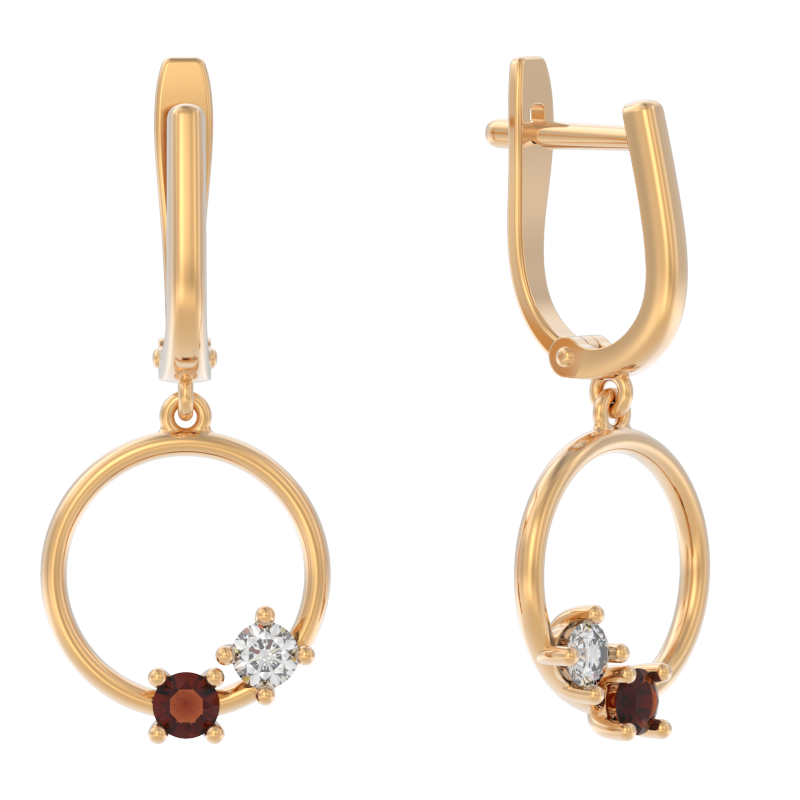 Серьги из золота с камнем Гранат, Фианит