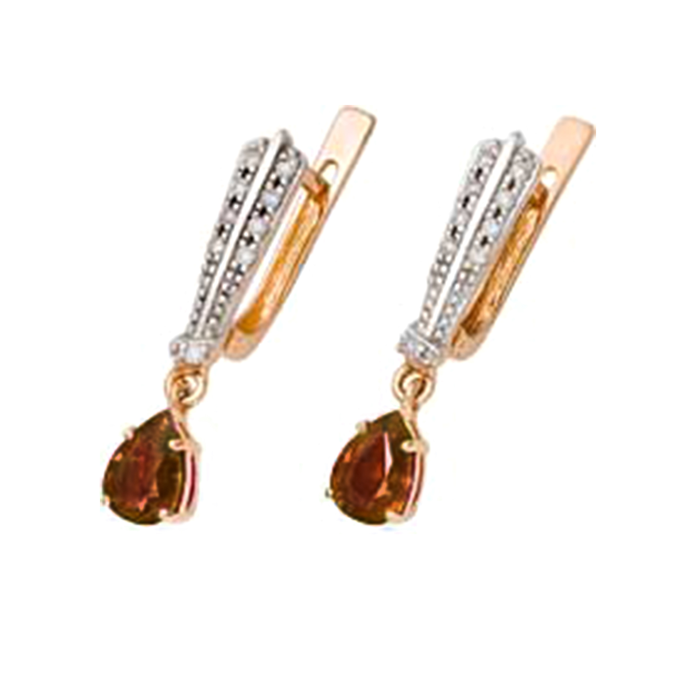 Серьги из золота с камнем Гранат, Фианит