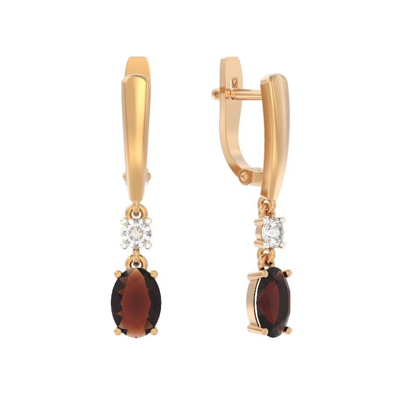 Серьги, с подвесным элементом | Гранат ,Фианит |