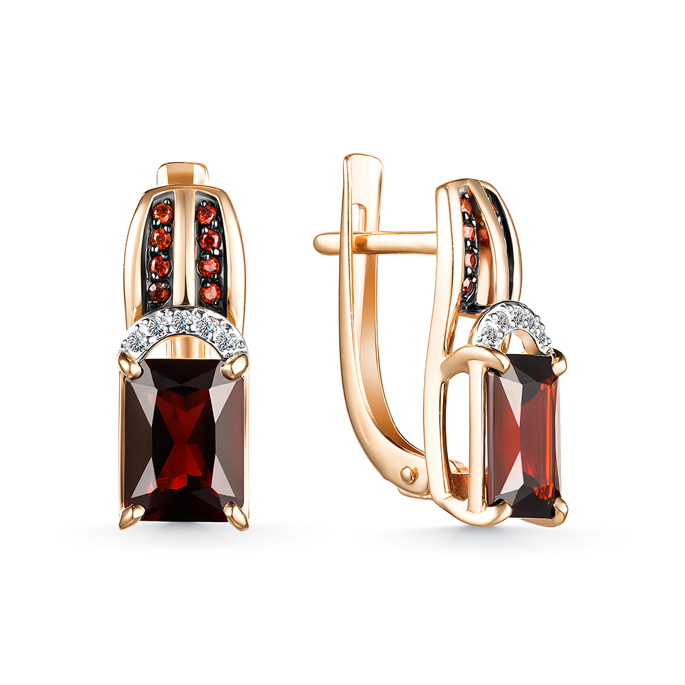 Серьги из золота с камнем Гранат, Фианит