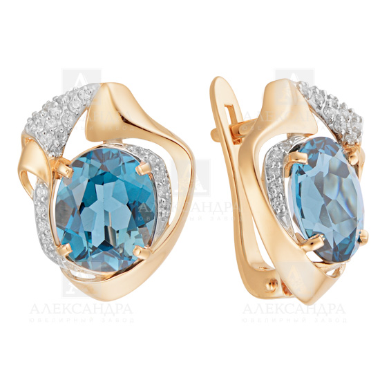 Серьги из золота с камнем Гранат, Фианит
