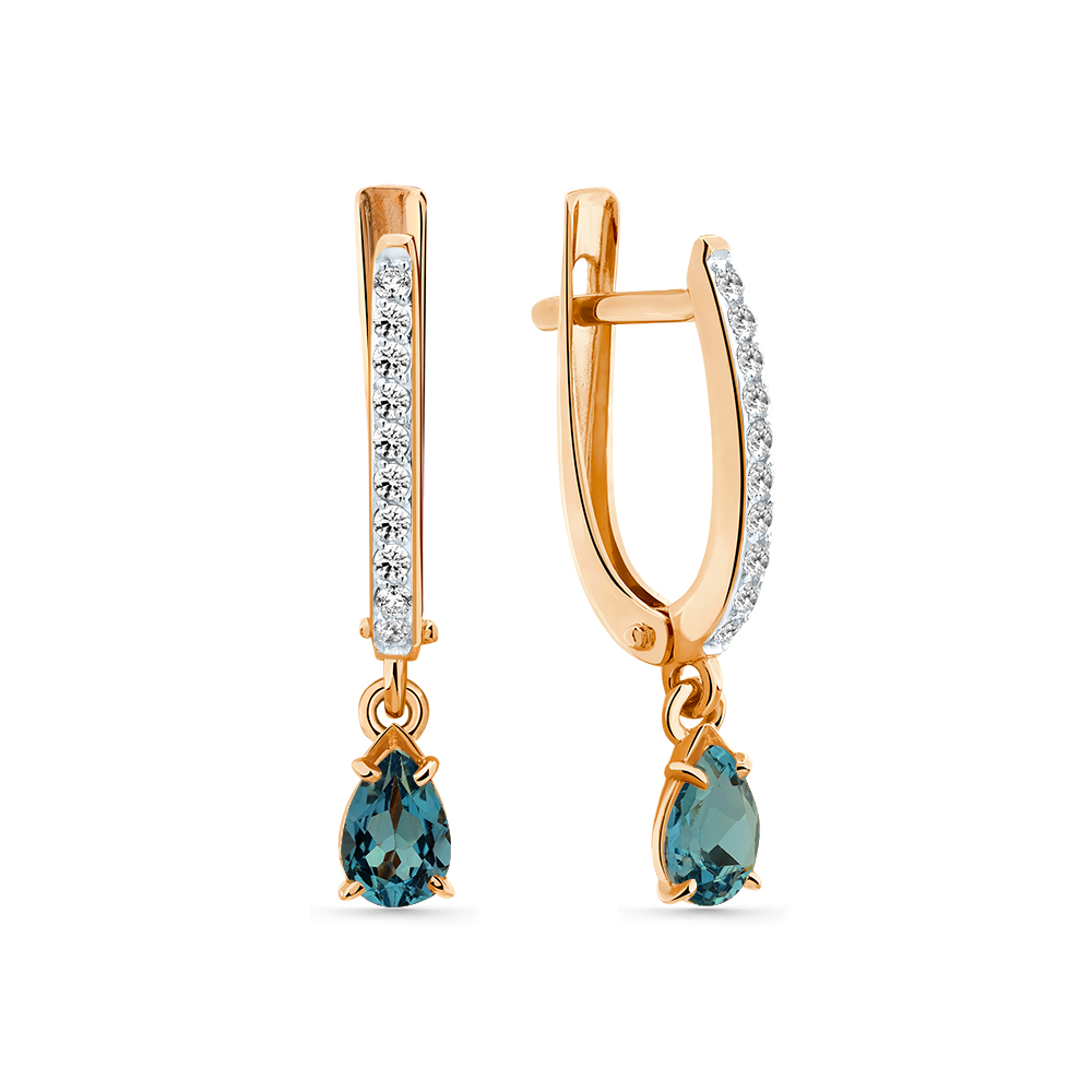 Серьги из золота с камнем Лондон топаз, Фианит