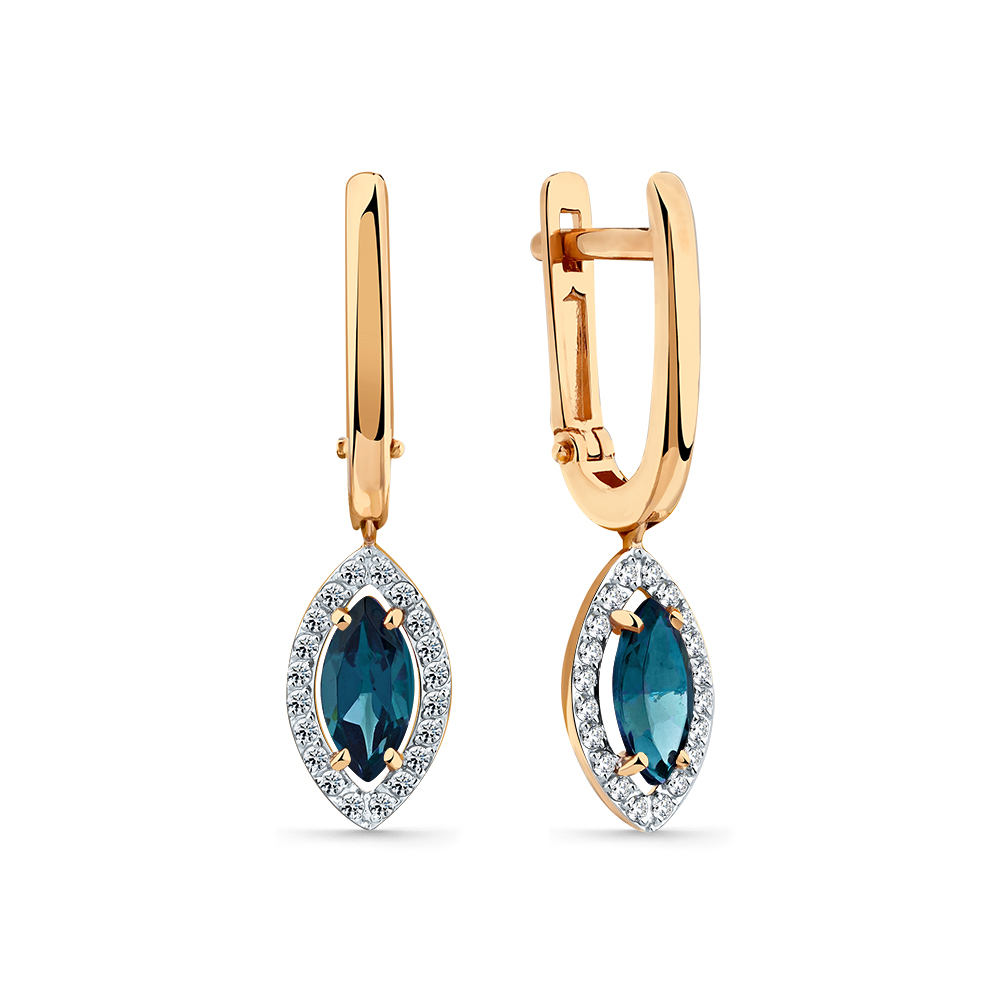 Серьги из золота с камнем Лондон топаз, Фианит