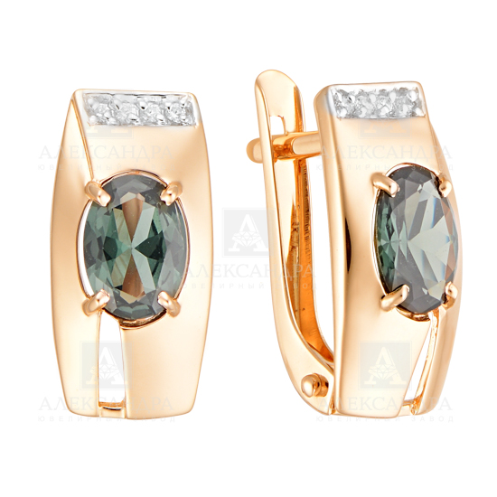 Серьги из золота с камнем Лондон топаз, Фианит