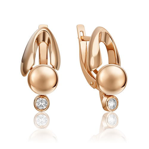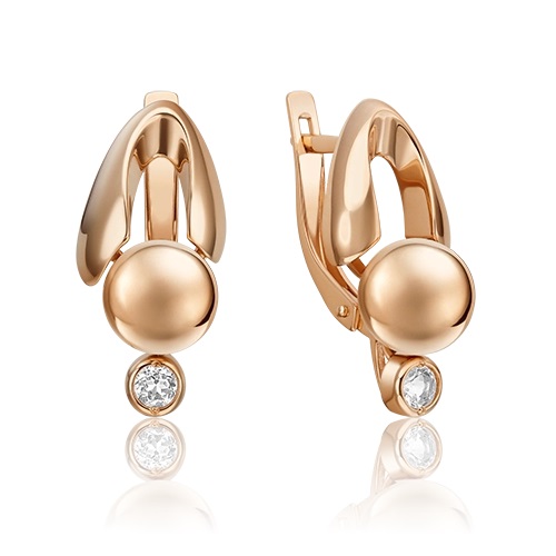 Серьги из красного золота 585 пробы с английским замком с white-топазом из коллекции PLATINA LINE от ювелирного бренда PLATINA. Дизайн украшения в стиле геометрия и минимализм. Декоративная часть изделий представляет композицию из геометрических элементов – шара с глянцевой поверхностью металла и объёмной изогнутой ленты. Изделия инкрустированы натуральными white-топазами, закрепка которых выполнена вручную. Серьги универсальны: подойдут к повседневному и деловому гардеробу, а также для коктейльных, праздничных и неформальных мероприятий.