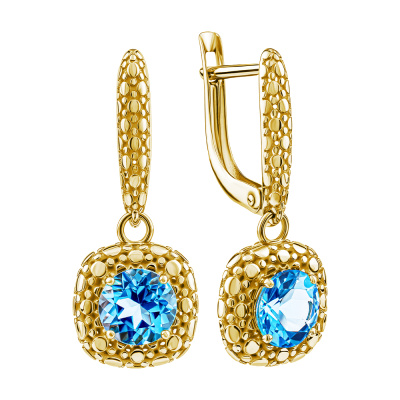 Серьги, с подвесным элементом, Желтый | Топаз Голубой |