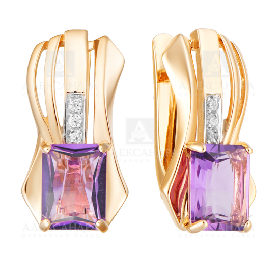 Серьги из золота с камнем Топаз, Фианит