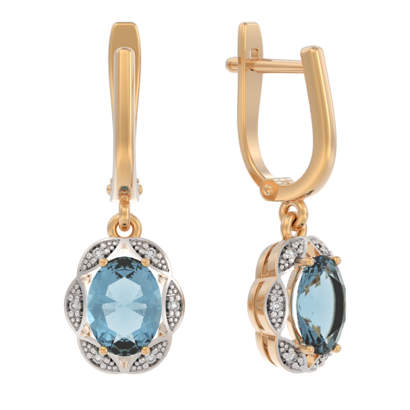 Серьги, с подвесным элементом | Топаз SWISS BLUE ,Фианит |