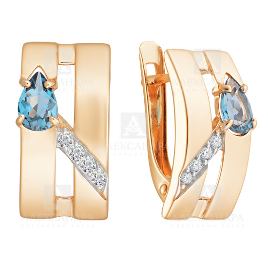 Серьги из золота с камнем Топаз, Фианит