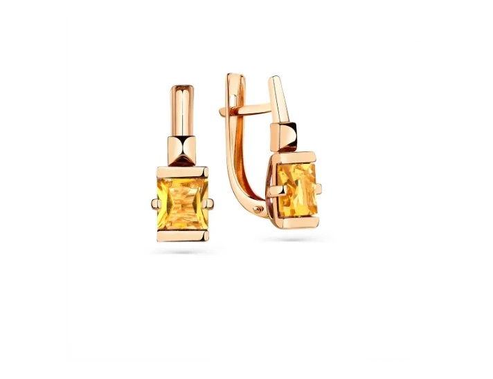 Серьги из золота с камнем Цитрин