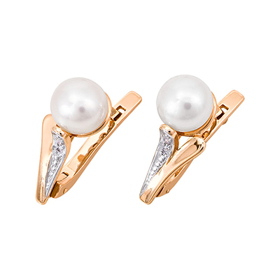 Серьги из золота с камнем Жемчуг, Фианит