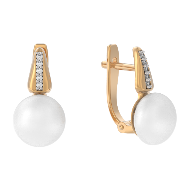 Серьги из золота с камнем Жемчуг, Фианит