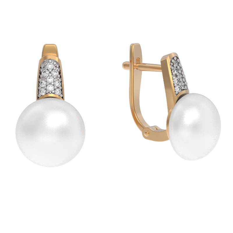 Серьги из золота с камнем Жемчуг, Фианит