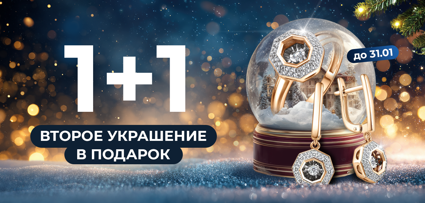 Покупайте одно золотое украшение и получайте второе в подарок!